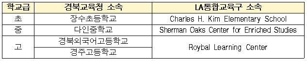 <경북교육청-LA통합교육구 온라인 공동 수업 참여 학교>