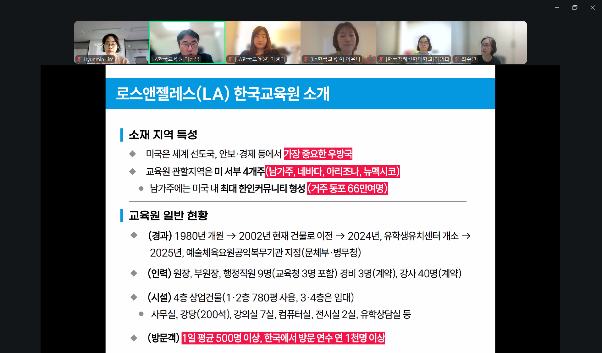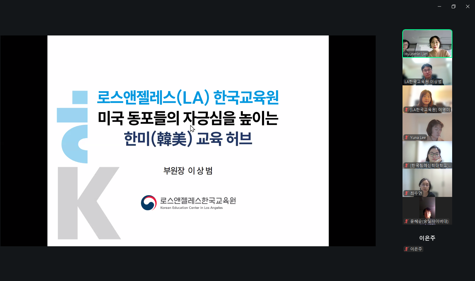 LA한국교육원, 한국노년교육학회 학술포럼 참가 및 발표 사진·영상뉴스 2026년02월27일 (발표1) 이상범 부원장: LA한국교육원 소개(발표2) 이영미 교육연구팀장: 미국 LA지역 한인 성인평생교육 현황과 사례(질의답변) 이유나 코디네이터 사진·영상뉴스 목록