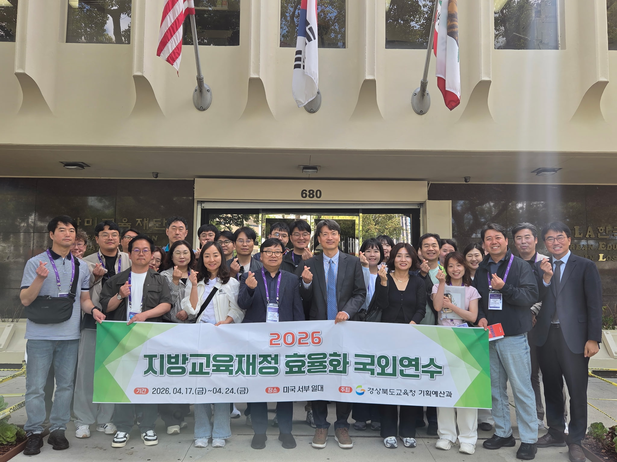 경북교육청 교육행정가 글로벌 역량 강화 연수단 방문 사진·영상뉴스 2026년04월22일 경북교육청 교육행정가 글로벌 역량 강화 연수단 방문일정: 4. 21(화) - 4. 22.(수)장소: Charles H. Kim 초등학교, Fairfax 고등학교, LA한국교육원 사진·영상뉴스 목록